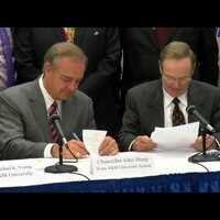 Texas A&M University System, Hidalgo County, and the City of McAllen officials gather in McAllen, TX to sign a letter of intent to open a new teaching facility.
