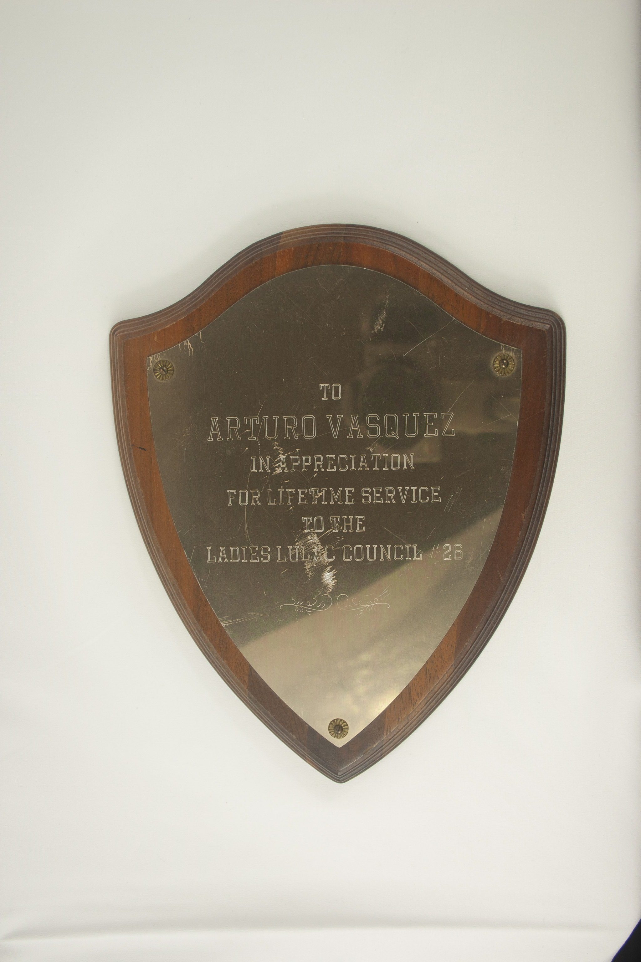 An Appreciation plaque for Lifetime service from the Ladies LULAC Council #26 to Arturo Vasquez.